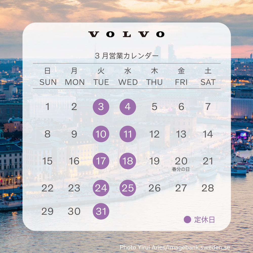 3月の定休日をお知らせします。